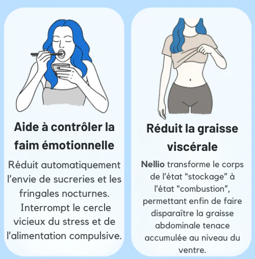 Stress führt zu einer ständigen Ausschüttung von Cortisol – einem Hormon, das den Appetit steigert und das Verlangen nach fett- und zuckerreichen Lebensmitteln erhöht. Cortisol verlangsamt zudem den Stoffwechsel, was das Abnehmen erschwert und oft zu Gewichtszunahme führt. Nellio enthält Ashwagandha, das hilft, den Cortisolspiegel zu regulieren, wodurch Heißhungerattacken reduziert und der Stoffwechsel ins Gleichgewicht gebracht werden können.